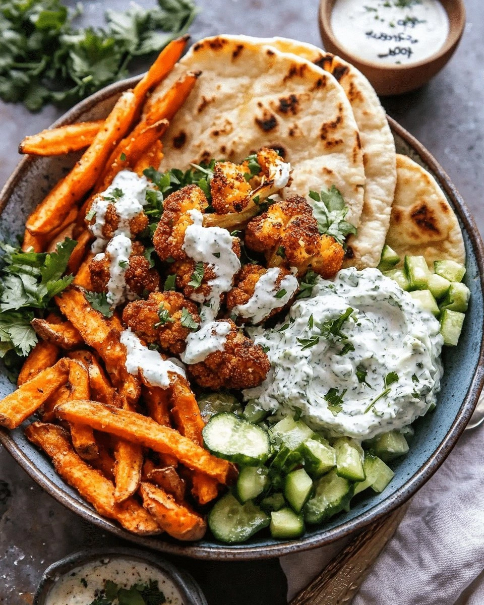 What makes this version stand out is that it isn’t just a rehash of a standard recipe. I’ve refined the spice blend to balance heat, smokiness, and earthiness, creating a depth that most take‑outs lack. The cauliflower is tossed in a secret coating of tahini‑infused yogurt, giving it an extra layer of richness that melts into the skin as it crisps. The tzatziki is homemade, thickened with Greek yogurt and a touch of honey, turning it into a silky sauce that clings to the vegetables. And the sweet potato fries are cut into matchsticks, baked to a golden crisp that complements the cauliflower’s texture. The result? A bowl that feels like a gourmet meal, yet is built from pantry staples and a few fresh ingredients.